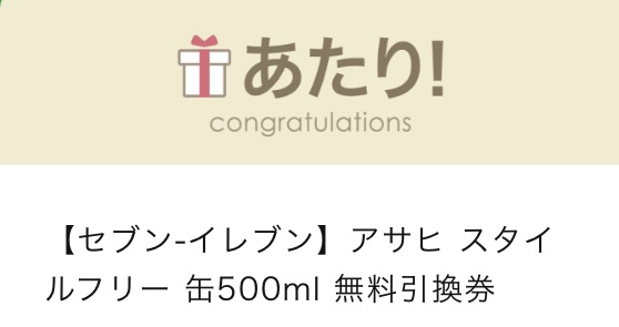 「『アサヒスタイルフリー<生>』が20万名様に当たる!コンビニ無料引き換えクーポン