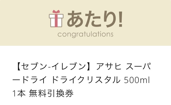 「アサヒスーパードライ ドライクリスタル」の無料引き換えクーポンをいただきました。