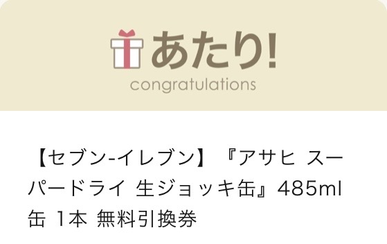 「アサヒスーパードライ 生ジョッキ缶」の無料引き換えクーポンをいただきました。