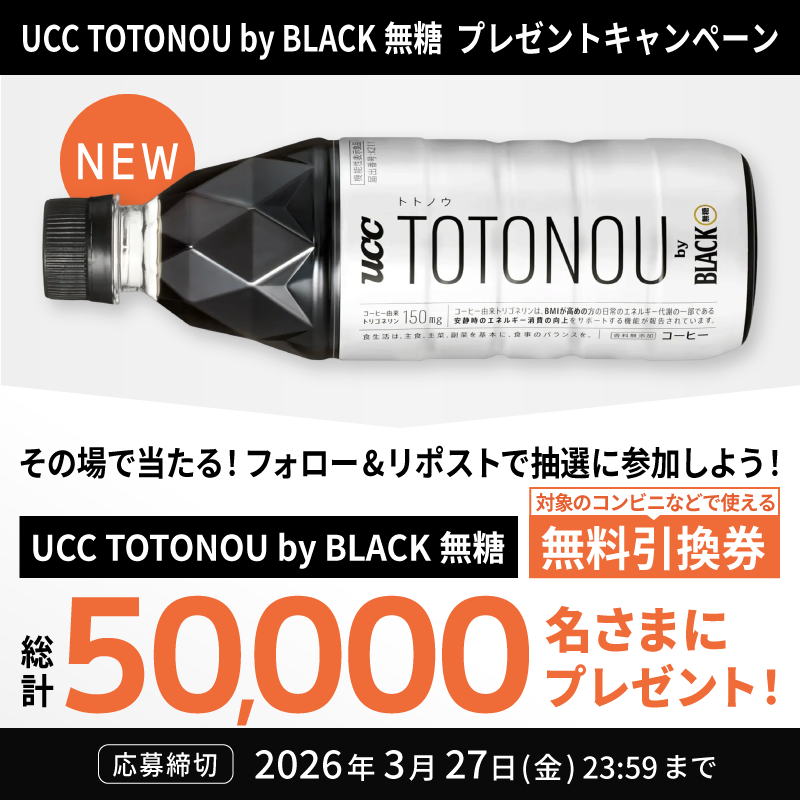 「『UCC TOTONOU by BLACK無糖』プレゼントキャンペーン」は