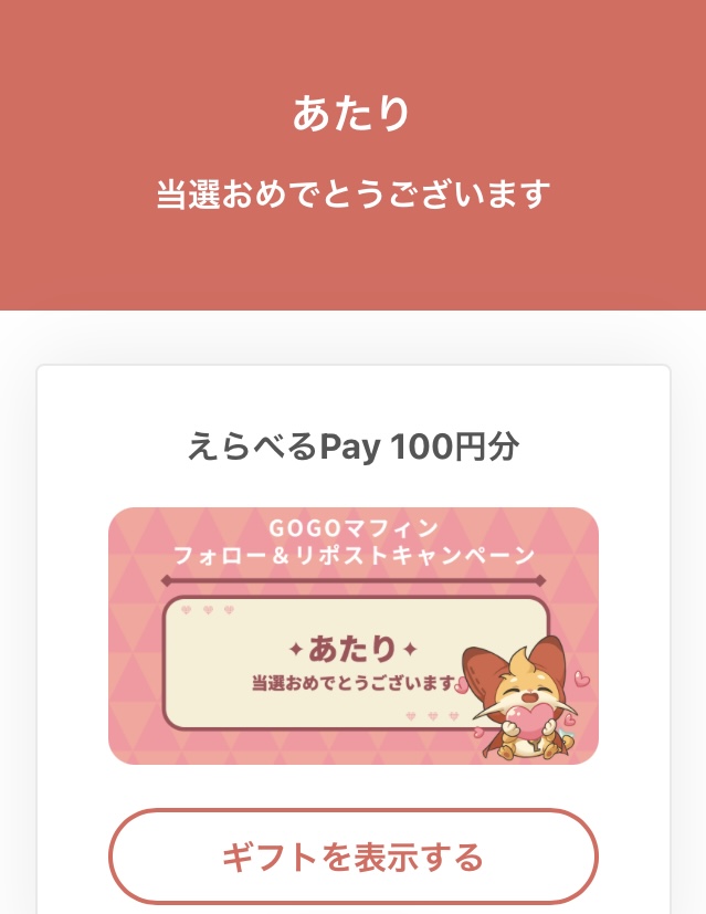 「えらべるPay 100ポイント(100円分)」をいただきました。