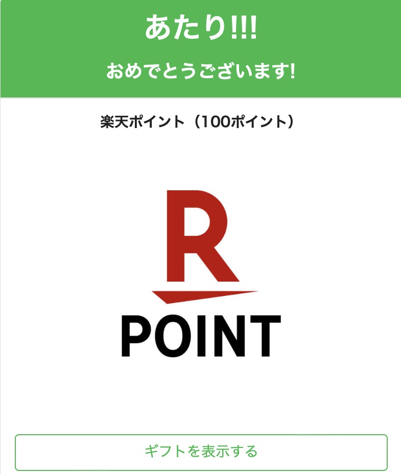 「楽天ポイント 100ポイント(100円分)」をいただきました。