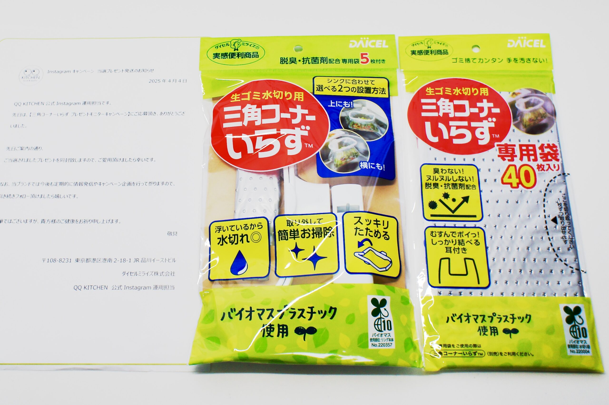 「三角コーナーいらず®BP 専用袋(40枚入)」をいただきました。
