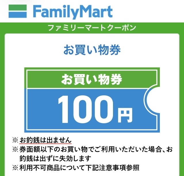「ファミリーマートお買い物券 100円分」をいただきました。