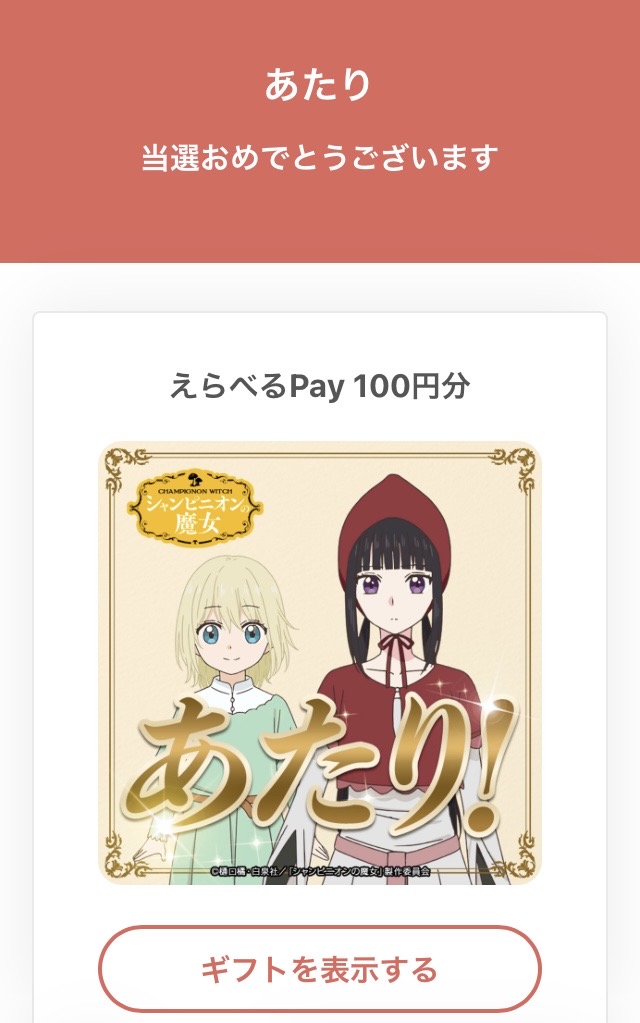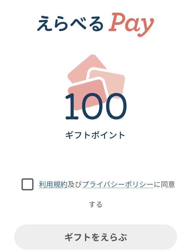 「えらべるPay 100ポイント(100円分)」をいただきました。
