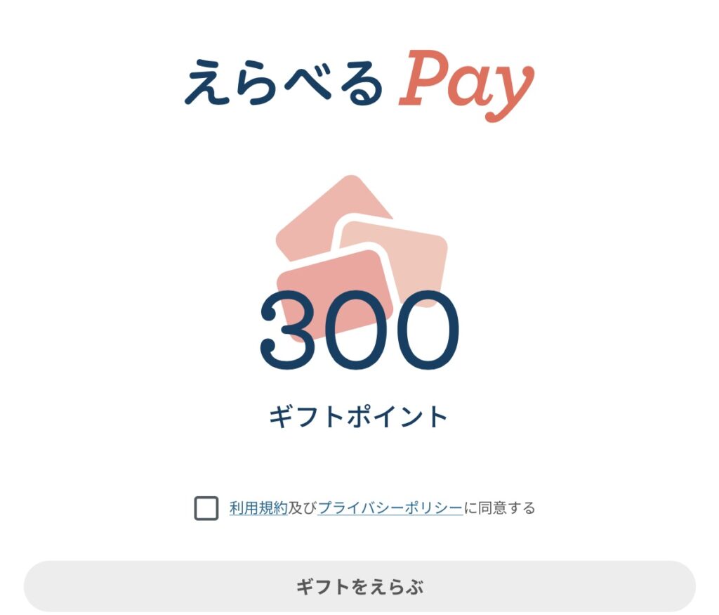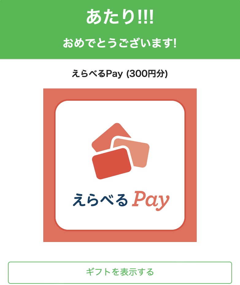 「えらべるPay 300ポイント(300円分)」をいただきました。