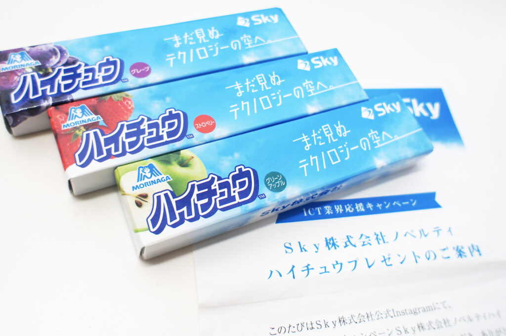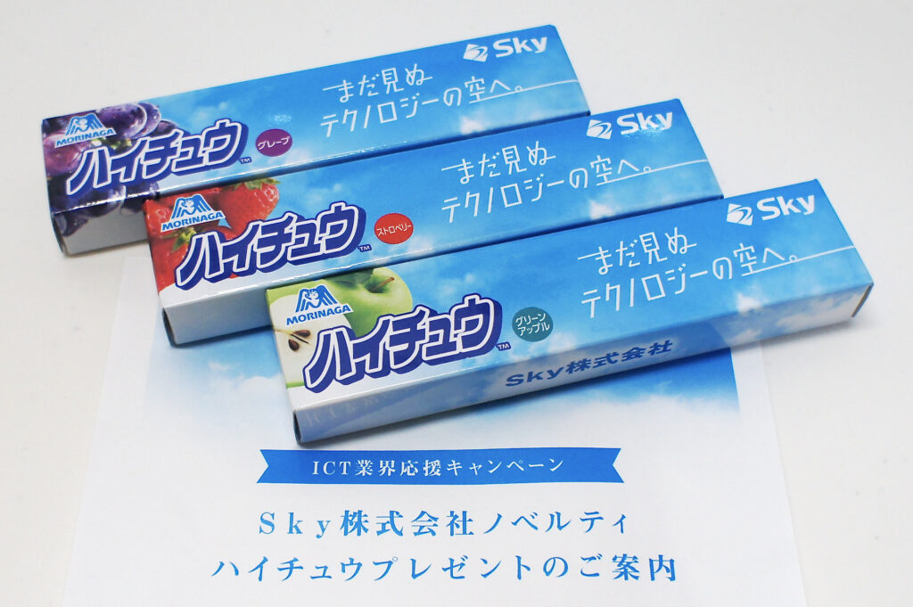 「『Sky株式会社ノベルティのハイチュウ』3種セット」をいただきました。