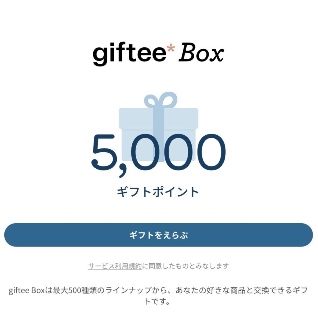 「giftee Box 5,000ポイント(5,000円分)」をいただきました。
