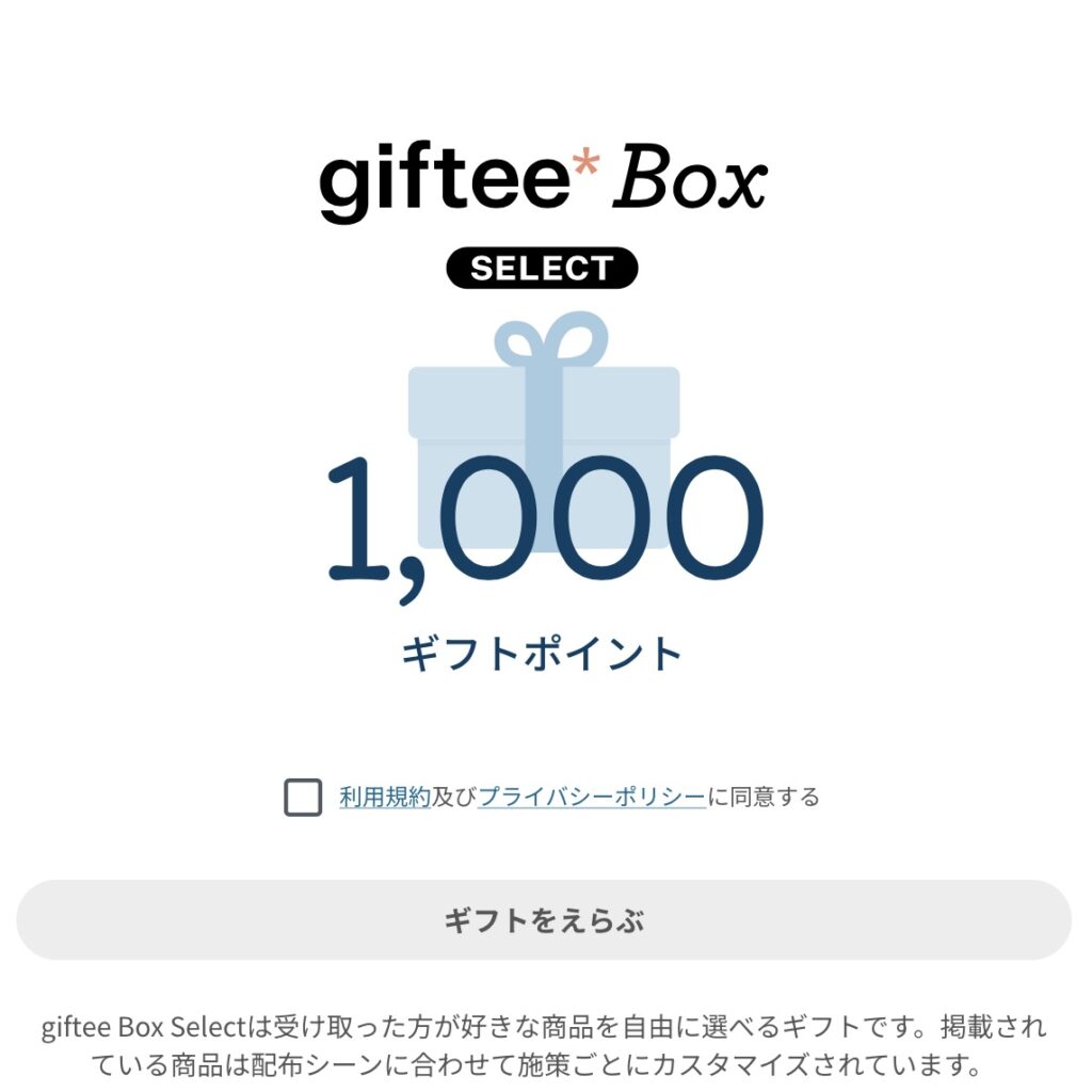 「giftee Box Select 1,000ポイント(1,000円分)」をいただきました。