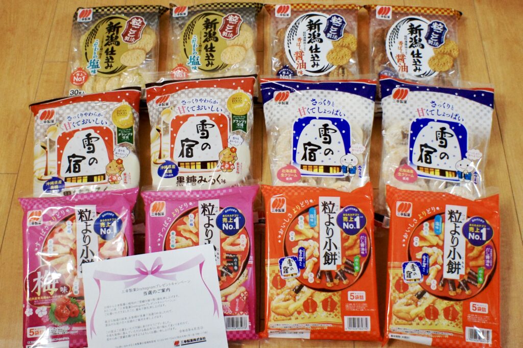 三幸製菓さんの「雪の宿」や「新潟仕込み」など米菓の詰め合わせをいただきました。