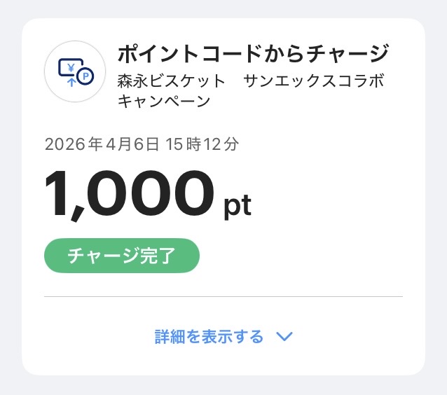 「PayPayポイント 1,000ポイント(1,000円分)」をいただきました。